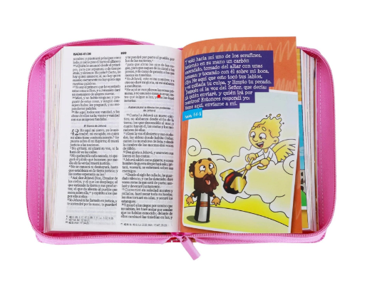 En esta exclusiva edición podrá disfrutar del texto completo de las Escrituras combinado con láminas a todo color con dibujos de las escenas más relevantes de la Biblia. Una edición única y de gran calidad para aprender a amar la Palabra de Dios.